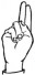 На ћирилици написано МИЛИЦА КЛИНЦОВ састоји се из 13 слова [?]. Исписано ћириличном једноручном азбуком за глувонеме: